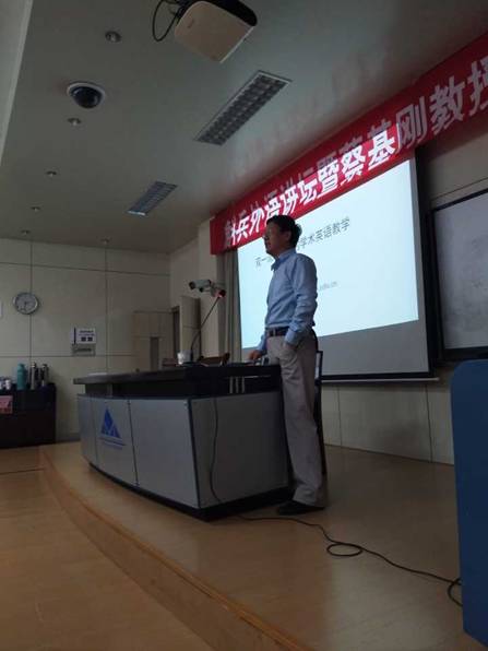 报告会开始,复旦大学博士生导师蔡基刚教授从当前教学定位不准和面对的双一流建设挑战出发,指出我们应该培养的是国际人才,应此我们应当由当前培养“鸡”的教学定位和方法向培养“鹰”的方式转变。接着,蔡教授指出学术英语是帮助学生用英语从事学习和研究的语言教学,既不等同于专业英语,也不等同于科研英语。现在,英语已经成为国际通用语,尤其是在科技领域。紧接着,蔡教授从定位、应用、语言、内容、能力、方法和素养等方面具体的谈了学术英语和通用应用之间的区别。蔡教授接着提出了在本科生中开展通用学术英语的模式,从培养学生的批判性思维和引用文献来说明自身观点的能力出发,从四个步骤详细解释了如何使用该模式,以达到极大的提高学生学术英语的学习和研究能力的目的。