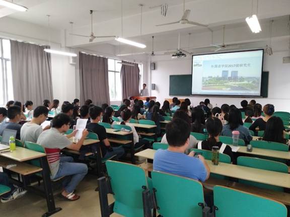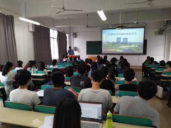 会议首先由胡丹书记代表学院致词,欢迎2017级研究生的到来。胡书记对学生们在研究生期间的学习生活提出了具体要求,教导学生努力在三年里成为有用之才,认真做好语言研究,致力文化的融合、交流和贯通。随后,韩院长为2016级研究生新生介绍了太阳官网的基本情况,包括太阳官网和发展历史等,他向同学们强调本硕的差别和创新的重要性,并根据太阳官网研究生培养的基本情况,详细介绍了学术型研究生和专业型研究生在培养目标和培养模式上的不同。接下来,副院长唐军介绍了各位导师的科研项目,研究成果等相关信息。