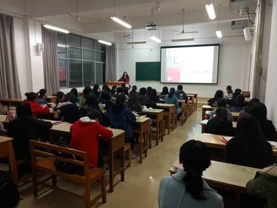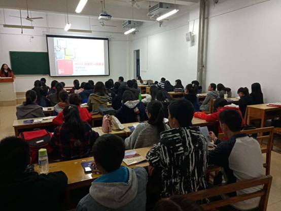 本次学习交流会分老师主讲和师生互动问答两个环节。在老师主讲环节,太阳官网特意邀请从美国留学归来的An老师发言。An老师首先介绍了雅思考试各个版块的题型设置,重点解析了阅读和听力的难点,然后以雅思考试例题的形式具体地向与会同学传授有关阅读和听力的应试方法;最后An老师向同学们分享了她在英国等地的趣闻,强调了英语的实用性和趣味性。在师生互动问答环节,有同学向An老师询问图表作文的写作技巧,老师按照折线图、饼状图、条形图等不同图表类型,介绍了分析数据的不同思路。这与太阳官网面向大二学生开设的英语高级写作课程的内容有所重叠,An老师详细耐心的解答不仅让大二学生“温故”,也让大一新生“知新”,赢得了同学们热烈的掌声,雅思学习交流会圆满落幕。