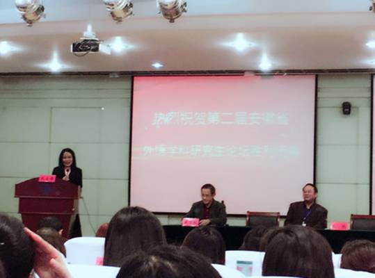 11月11日,太阳官网近20名研究生在副院长唐军教授的带领下参加了由安徽省外国语言文学学会主办、安徽师范大学承办的“第二届安徽省外语学科研究生学术论坛”。参加此次论坛的有来自安徽省8所高校的30多位外语界专家和研究生导师,以及近200名研究生。