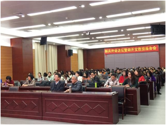 2018年3月21日下午,斛兵外语讲坛第一场学术报告会于122cc太阳集成游戏官方网站翡翠湖校区科教楼第四会议室成功举办,讲坛特邀上海交通大学122cc太阳集成游戏官方网站院长胡开宝教授作为主讲人。122cc太阳集成游戏官方网站全体教师和在校研究生到场聆听与学习。