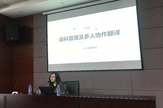 首先,拥有5年翻译经验的项目经理详细介绍了语料的检索技术,包括国内外记忆库、术语库、在线词典等各种资源及其使用方法,还包括通配符、正则表达式的使用。师生们了解了如何在不同系统的电脑中快速查找文档;如何理解语料库的概念,如何制作语料库,国内外主流对齐工具及使用方法;如何运用Tmxmall私有云进行语料管理。在演示语料管理及多人协作翻译的相关步骤后,项目经理与在座的同学进行合作,为大家演示了项目翻译中任务的分配,翻译及校对的全过程。