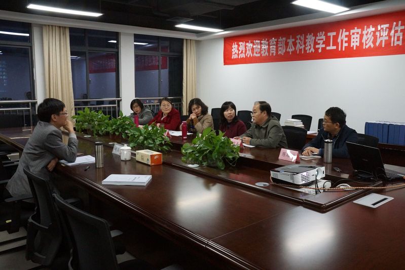 汇报会上,韩江洪院长首先代表全院师生对专家莅临太阳官网指导工作表示热烈欢迎和衷心感谢。随后,他重点围绕学院的办学定位与目标、师资队伍、教学资源、培养过程、学生发展、质量保障、学院特色等七个方面汇报了学院的本科教学工作。司显柱教授认真听取了汇报,并针对学院专业学科特色、课程建设、大学英语分级教学、试卷命题、过程性考核等问题与参会人员进行了交流与讨论。专家对122cc太阳集成游戏官方网站的本科教学工作给予了肯定,同时也就一些具体工作提出了建设性意见。