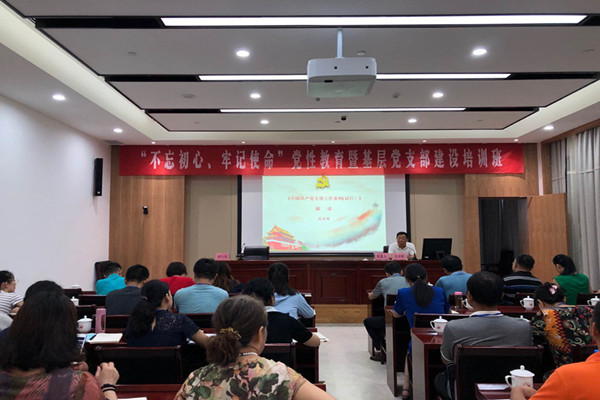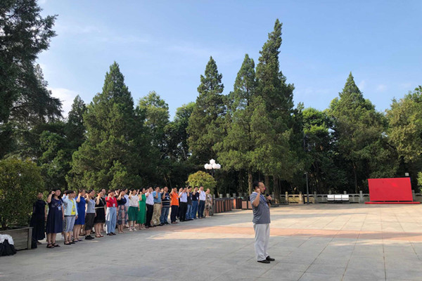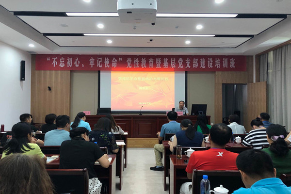 7月22日至7月23日,122cc太阳集成游戏官方网站“不忘初心、牢记使命”党性教育暨基层党支部建设培训班在金寨干部学院开班,学院全体党委委员、教工各支部书记、系部主任和辅导员等40余人参加培训班。