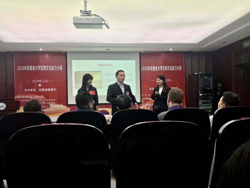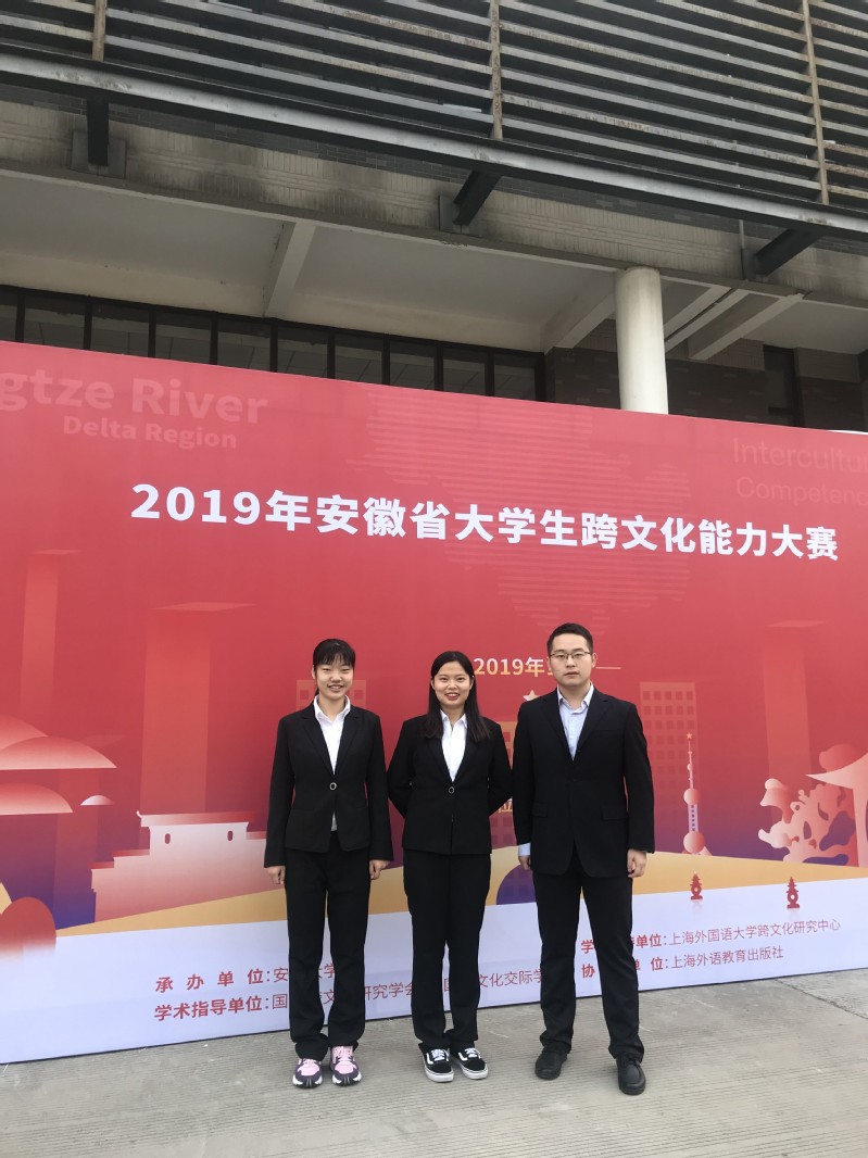 2019年安徽省大学生跨文化能力大赛于11月9-10日在安徽大学成功举办,来自全省25所高校的参赛团队展开激烈角逐。太阳官网选派的跨文化能力团队首次参赛,并在太阳官网刘丽老师的精心指导下获得二等奖的好成绩。展现了太阳官网大学生过硬的语言技能和跨文化能力,凸显了太阳官网英语教学改革的成效。三位参赛队员分别是2016级英语(国际贸易)专业的史晓丹、2018级微电子科学与工程专业的崇雯玥和2018级高分子材料与工程专业的郭魏楠。