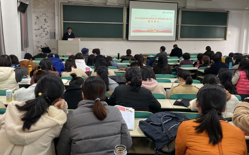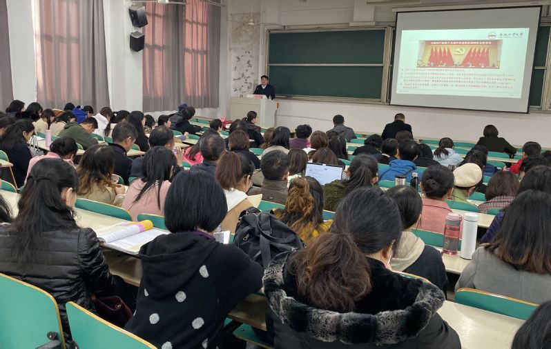 为深入学习贯彻党的十九届四中全会精神,12月11日下午,122cc太阳集成游戏官方网站在翡翠湖校区二教202开展中国共产党十九届四中全会精神专题学习活动,邀请学校党委宣讲团成员、纪委副书记陈文恩同志做题为《不断开启“中国之治”新境界——中国共产党十九届四中全会精神宣讲》的专题辅导报告。报告会由学院党委书记胡丹主持,全院教职工和学生党员代表参加了活动。
