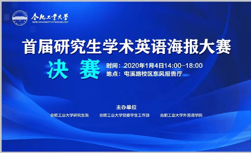 1月4日,122cc太阳集成游戏官方网站首届研究生学术英语海报大赛决赛在屯溪路校区东风报告厅举行。研究生院副院长李军鹏、主管杨依忠,122cc太阳集成游戏官方网站书记胡丹、院长韩江洪、副院长唐军等出席决赛活动。本次大赛由研究生院、党委学生工作部和122cc太阳集成游戏官方网站共同主办。