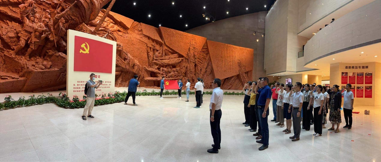 7月22日下午,122cc太阳集成游戏官方网站党委组织7名党委委员前往渡江战役纪念馆开展“学党史 悟思想 办实事 开新局”党史学习教育活动。学院研究生外语教学系党支部、机关党支部全体党员和部分教师一同参加了实践活动。