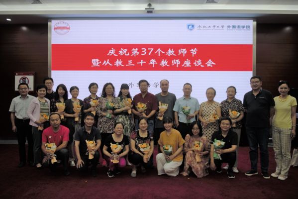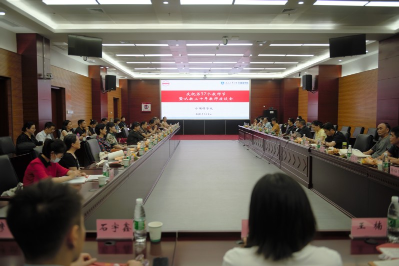 9月8日下午,122cc太阳集成游戏官方网站在翡翠科教楼A座第四会议室召开“庆祝第37个教师节暨从教三十年教师座谈会”。学院领导班子成员、从教三十年教师、新进青年教师代表、教工党支部书记、系主任参加了座谈会。座谈会由学院党委书记刘晓峰主持。