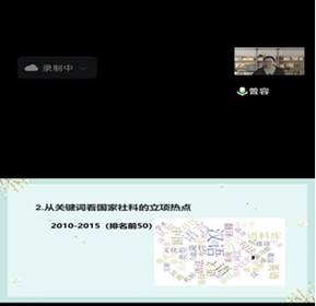曾老师首先从近几年立项的国家社科基金项目的选题中,分析了语言学方向的关键词、立项趋势和热点,并阐释了2021年国家社科申报的重大变化。其次,曾老师根据国家社科基金项目通讯评审意见表,从选题、论证及研究基础三个方面,分享了申报心得:在“选题”部分,建议申报人将自身的研究兴趣与国家战略发展需求相结合,明确本课题相对于已有研究的独到学术价值和应用价值;在“论证”部分,强调了图表在“论证”部分的应用;在“研究基础”部分,阐释了如何有效列出主持人已经发表、出版的相关研究成果和项目。曾老师的报告全面系统、客观生动,具有很强的项目申报指导性。最后,曾老师还结合自己的学习、教研和学术发表经历,分享了其如何平衡教学与科研、读书与写作、工作与生活的感悟,具有较大的启发意义。