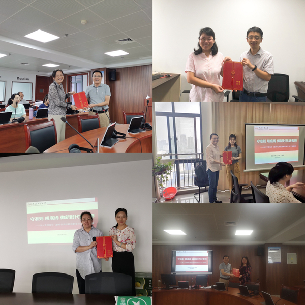 各党委委员首先宣讲了《新时代高校教师职业行为十项准则》《教育部关于高校教师师德失范行为处理的指导意见》《关于加强和改进新时代师德师风建设的意见》《研究生导师指导行为准则》《122cc太阳集成游戏官方网站师德失范行为处理办法》等师德重要规范和制度,然后结合教育部公开曝光的违反教师职业行为十项准则典型案例进行师德警示教育,通过介绍师德违规问题和处理结果引导教师以案明纪、以案为鉴。