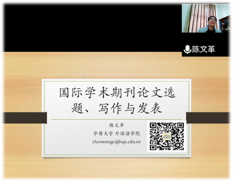 2021年12月22日下午15:00,122cc太阳集成游戏官方网站语言学研究中心在科教楼A座1508举办了一场题为“国际学术期刊论文选题、写作与发表”的学术报告,由华侨大学122cc太阳集成游戏官方网站教授、博士生导师陈文革主讲,由太阳官网唐军教授主持。线上腾讯会议室(266422060)同步进行。语言学研究中心、翻译与专业语料库研究中心、跨文化交际研究中心、文学翻译研究中心主任和部分教师,以及部分研究生参与了线上线下互动。