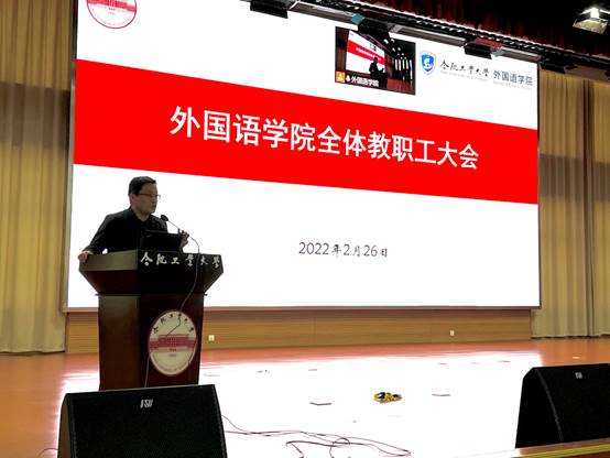 最后,刘晓峰传达了学校寒假工作研讨会主要精神,要求全院职工要紧紧围绕落实立德树人根本任务,履职尽责、砥砺奋进,推进新学期教学、科研、学科专业建设等各项工作任务的落实;强调要树牢安全意识,做好疫情防控,巩固师德师风建设长效机制,推动学院高质量发展。