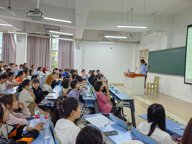 9月28日下午,122cc太阳集成游戏官方网站开展了以“法治宣传进校园,筑牢反诈安全墙”为主题的防诈骗讲座,特邀经开分局刑警大队戴梦晗警官为学生讲解了“防骗指南”。