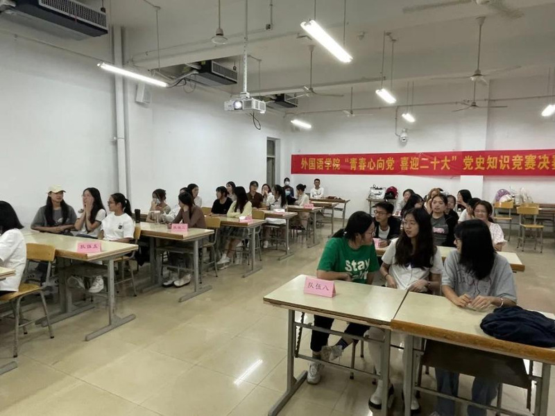 9月29日晚21点,“青春心向党,喜迎二十大”为题的党史知识竞赛决赛于翠四教203教室进行。