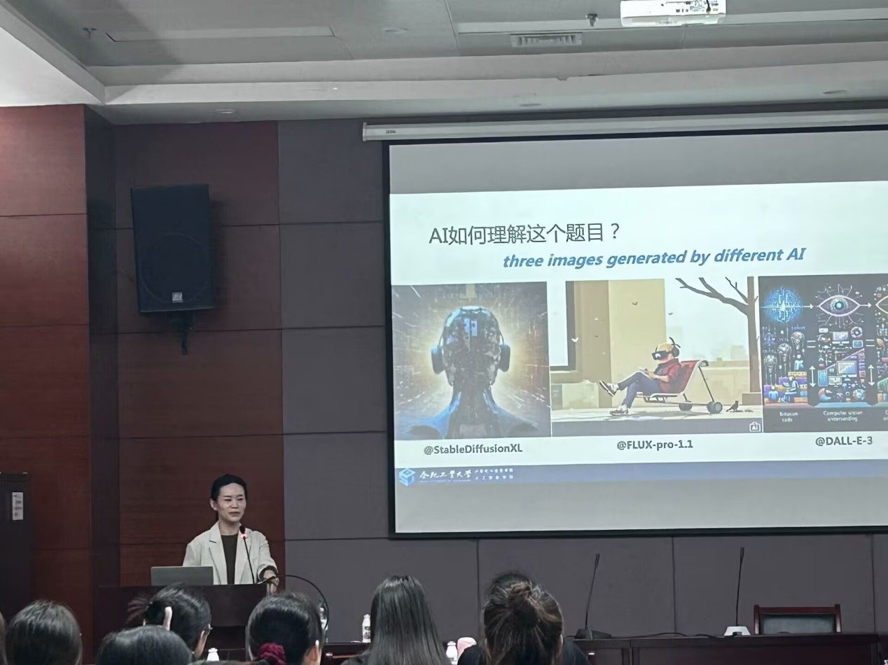 互动环节,师生听众积极提问,胡老师耐心地解答了一系列关于AI的不同角度的问题,如AI是否会取代人类进行翻译、会给语言学生就业带来怎样的挑战、初学者应当如何学会利用AI助力日常学习等。她强调,AI技术潜力无穷,能力巨大,可以广泛应用,助力人类开拓探索,但也需要伦理约束和价值判断,是当下人类的重要命题,我们有必要审慎对待。