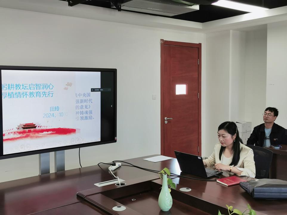 首先,支部书记田玲开展了题为“躬耕教坛启智润心,厚植情怀教育先行”的党课教育活动,从突出政治标准的首要地位、明确职业道德的高线要求、丰富爱生情怀的深刻内涵和拓展学习践行的实践路径四个方面,号召支部党员老师要大力弘扬教育家精神,牢记为党育人、为国育才的初心使命,树立“躬耕教坛、强国有我”的志向和抱负,自信自强、踔厉奋发。支部党员认真聆听党课,纷纷表示在今后的工作中要继续深化课程改革,着力推进素质教育,主动增强师德师风建设,深入开展教育教学研究,有效提升教育教学质量,为强国建设与民族复兴伟业作出新的更大的贡献。