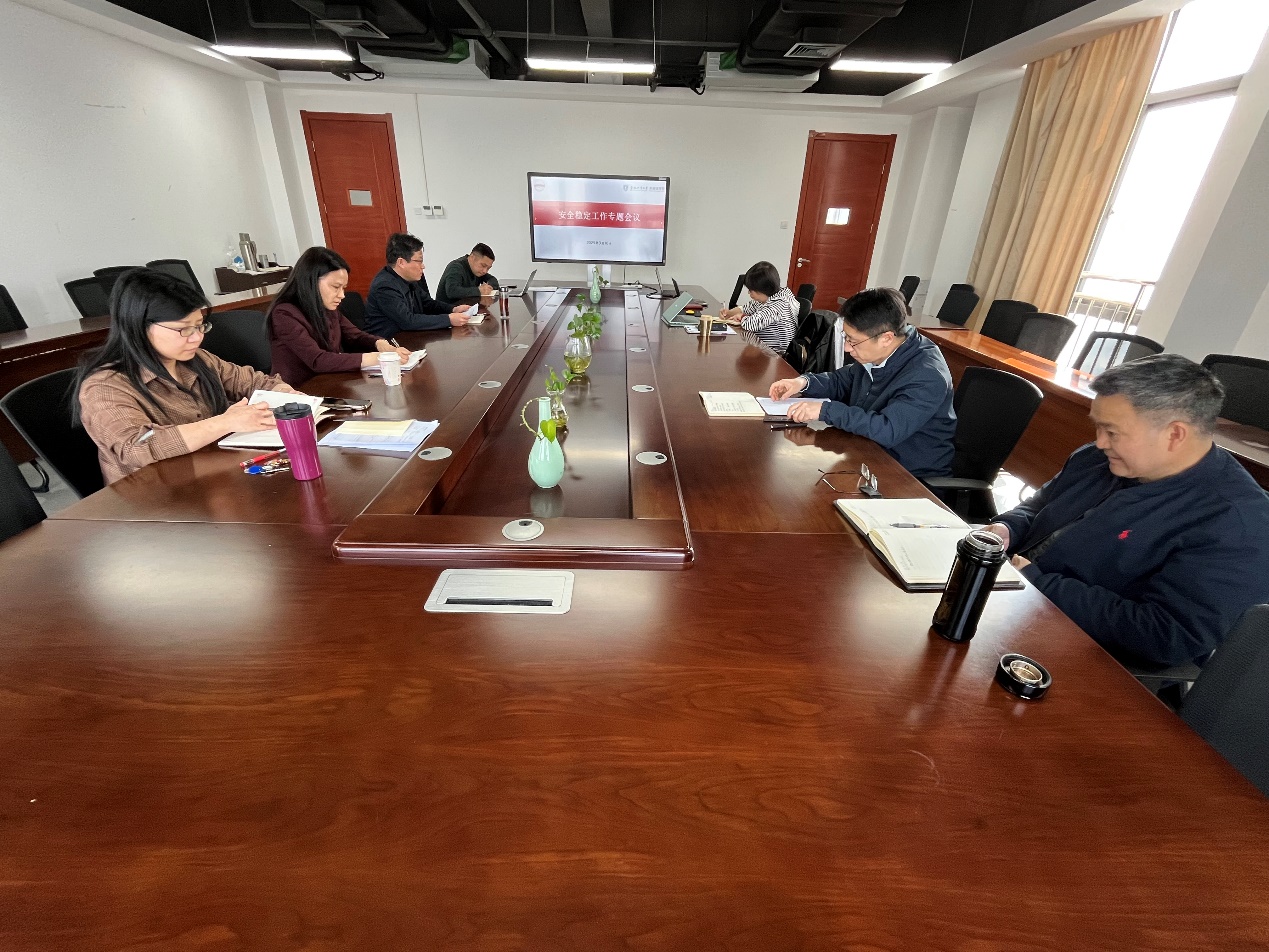 会议强调,安全稳定工作是学院高质量发展的前提,关乎师生切身利益和学院发展,必须深刻认识到做好安全稳定工作的极端重要性。一是要提高政治站位,扛牢安全责任。各分管领导要以“时时放心不下”的责任感,切实抓好分管领域安全工作,把安全稳定工作要求落实到具体工作中。二是要加强师生安全教育,坚决守牢底线。要强化底线思维,及时深入掌握师生思想动态,将安全理念融入日常教学、科研和管理中,共同营造和谐稳定的育人环境。三是要持续深入开展安全隐患排查治理。要严管思想阵地,加强对学院网页、新媒体平台的审核监督。开展学生心理健康排查、语音室安全检查,及时消除安全隐患,确保学院安全稳定。