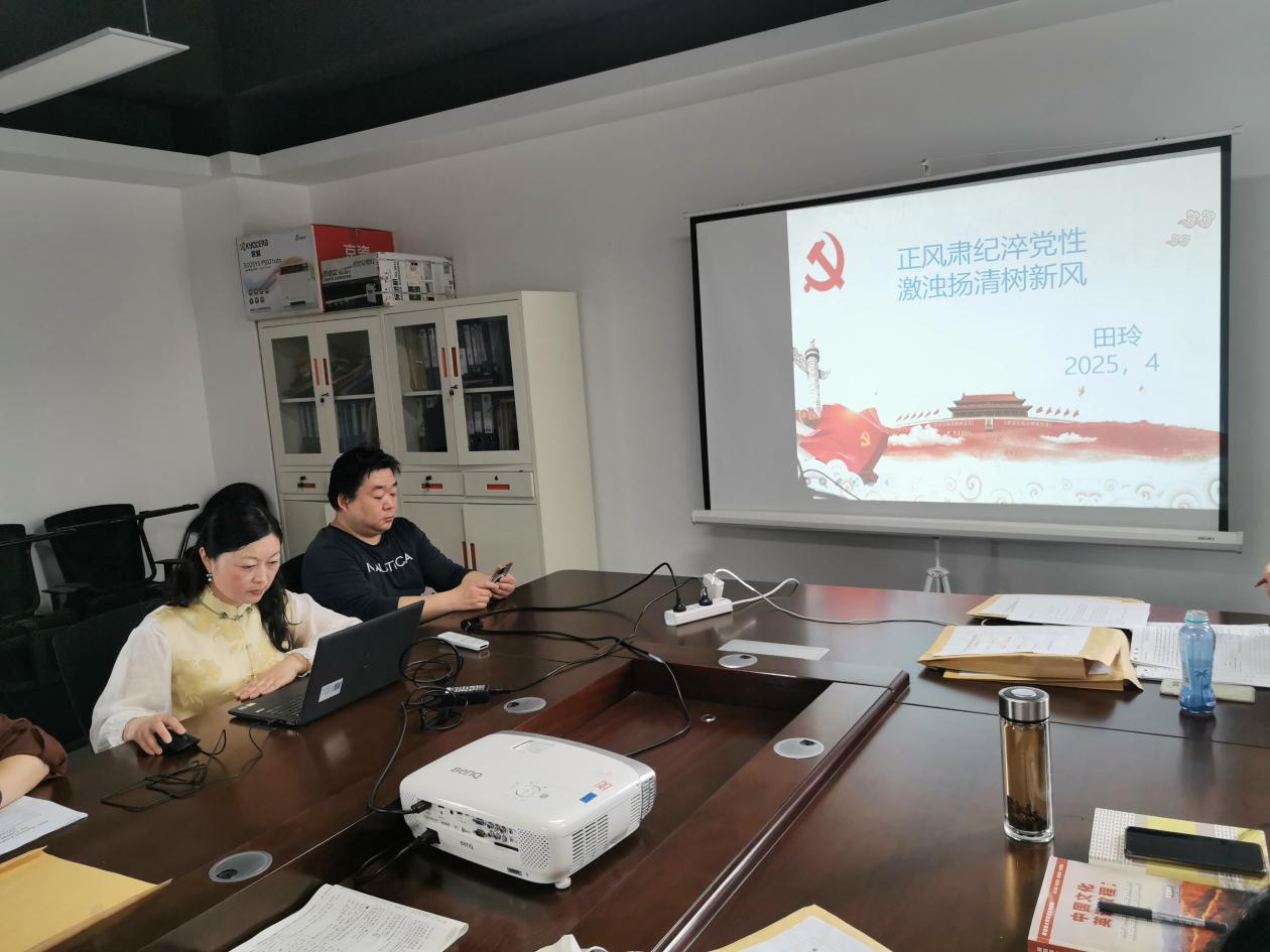 2025年4月16日下午,122cc太阳集成游戏官方网站大学英语一系课程教学教研室党支部开展党课学习活动。支部书记田玲为大家讲了一节题为“正风肃纪淬党性,激浊扬清树新风”的党课,支部党员认真学习,课后开展了热烈讨论。