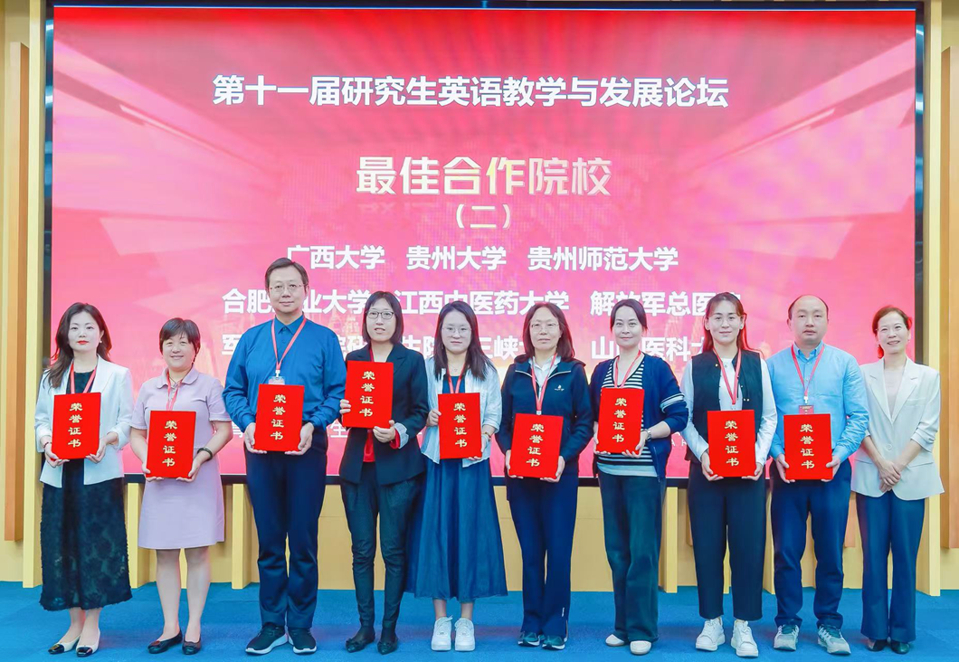 5月10日至11日,由北京市高等教育学会研究生英语教学研究分会主办、中国人民大学出版社承办的2025年第十一届全国研究生英语教学与发展论坛在中国人民大学苏州校区举行。本次论坛的主题为“AI时代研究生外语教学的发展与实践探索”,论坛开幕式上,122cc太阳集成游戏官方网站被授予“最佳合作院校奖”,以表彰太阳官网在研究生英语教学改革中的突出贡献。