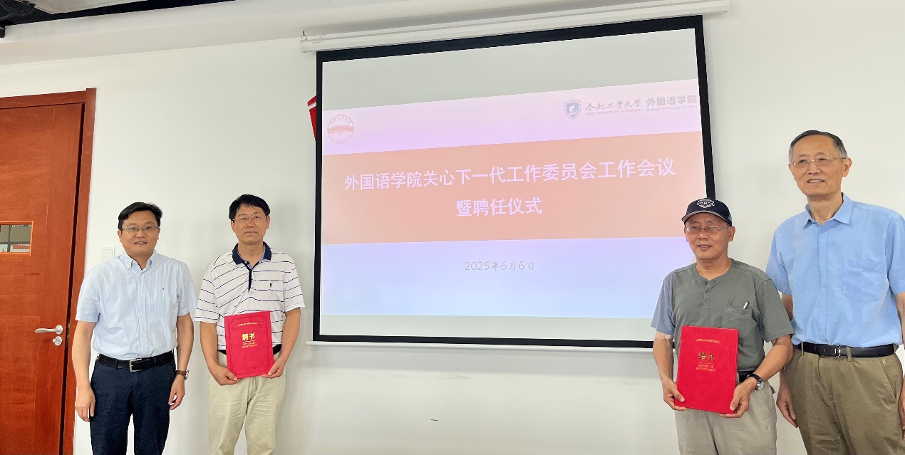 6月6日下午,学院在翡翠科教楼A座1508会议室召开关工委工作会议暨聘任仪式,学校关工委常务副主任王皖江、学院领导班子部分成员、外语系主任陈曦和关工委成员参加了会议,会议由学院党委副书记兼纪委书记袁杨华主持。