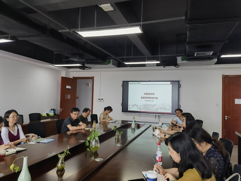 6月24日,学院在翡翠科教楼A座1510会议室召开本科生全程导师制工作研讨会。学院领导班子和班导师代表参加,外语系主任陈曦主持会议。