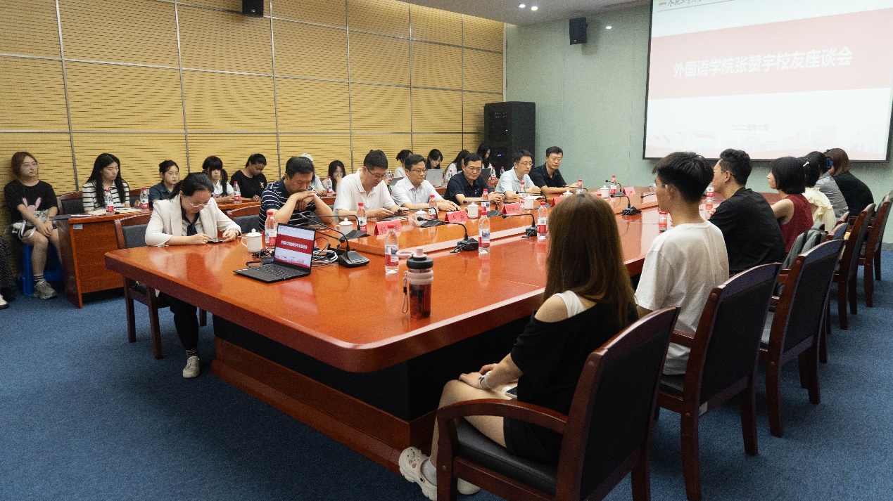 2025年6月27日,122cc太阳集成游戏官方网站张赞宇校友座谈会在宣城校区图书馆101举行,1993届外语系英语(科技)专业校友、安徽万带兰国际贸易有限公司与合肥优泰克电器有限公司董事长张赞宇以及企业相关负责人应邀做客座谈会,122cc太阳集成游戏官方网站党委书记刘晓峰、校区学生工作办公室副主任李澍、外语系主任陈曦以及英语系师生代表参加座谈会。