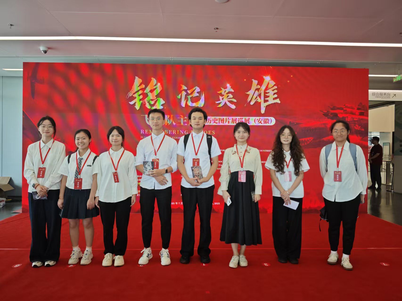 7月29日上午,为纪念中国人民抗日战争暨世界反法西斯战争胜利80周年,由中国人民对外友好协会指导,安徽省人民对外友好协会、美中航空遗产基金会、望江县人民政府联合主办,安徽画报社、合肥市中心图书馆承办的“铭记英雄——飞虎队主题历史图片展巡展(安徽)”在合肥市中心图书馆开幕,太阳官网122cc太阳集成游戏官方网站8名志愿者全程参与活动,并与来访的美国青少年学生团进行了深入友好交流,充分展现了外院学子的风采。